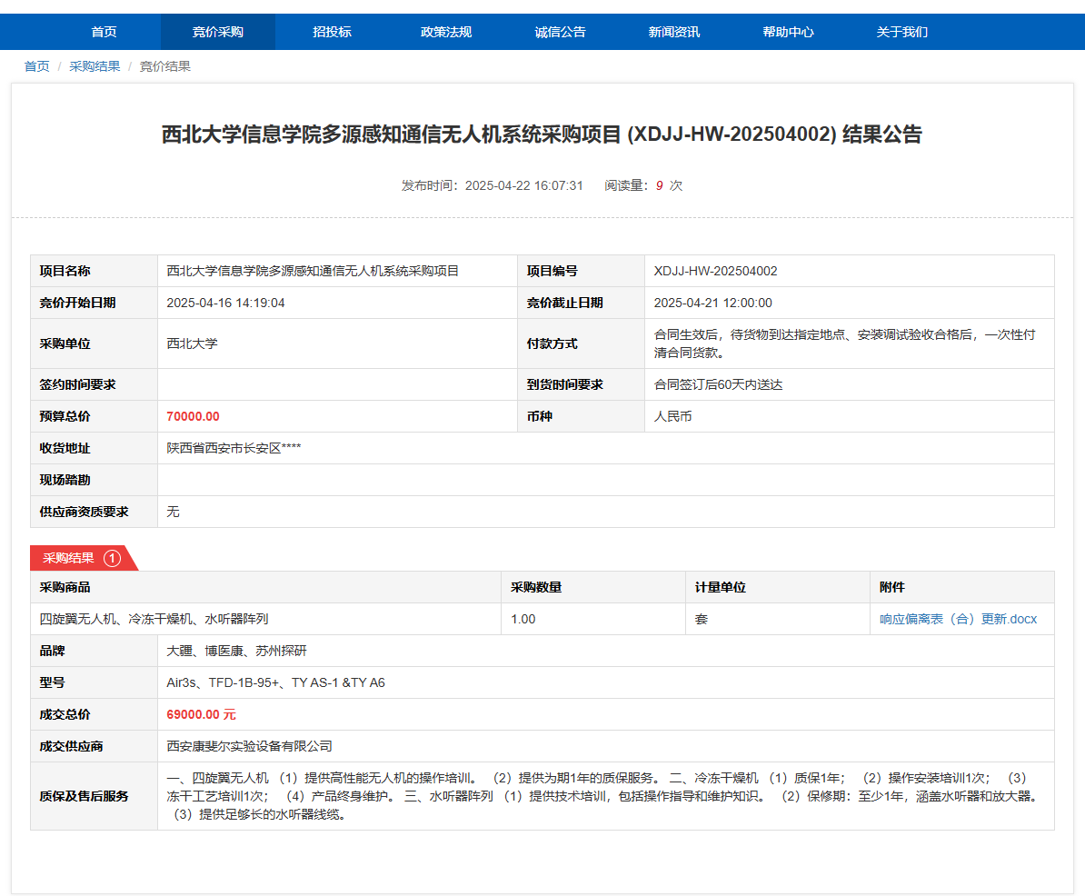 乐动网页版登录入口信息学院多源感知通信无人机系统采购项目 (XDJJ-HW-202504002) 结果公告 作者:采购与招标办公室 编辑: 时间:2025-04-22 原公告链接:https://www.ejingcai.com.cn/site/bidding/detail/17844