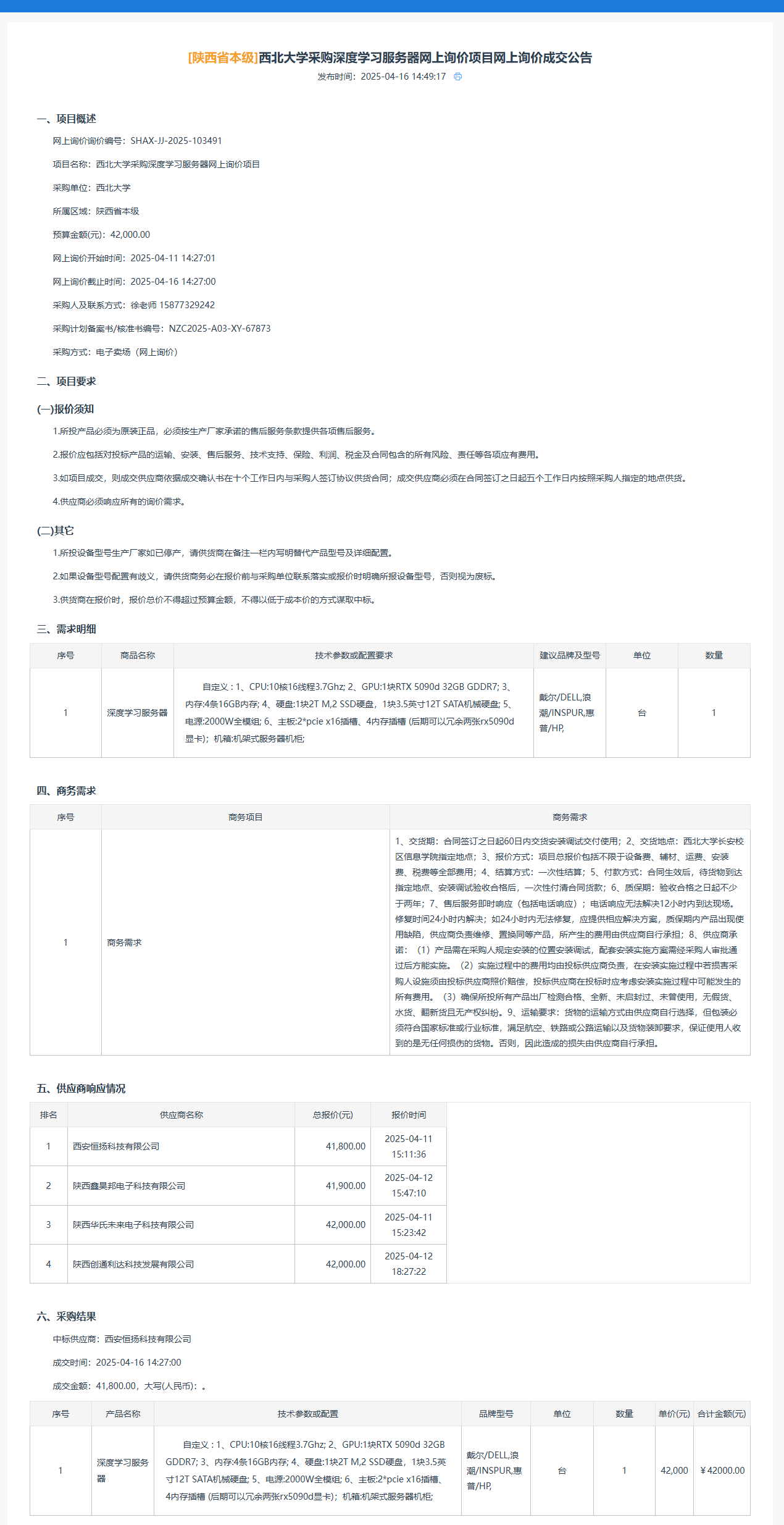 乐动网页版登录入口采购深度学习服务器网上询价项目网上询价成交公告 作者:采购与招标办公室 编辑: 时间:2025-04-23 原公告链接:https://www.ccgp-shaanxi.gov.cn/gpmall-main-web/basic/noticeDetail?noticeGuid=7311545629157818368