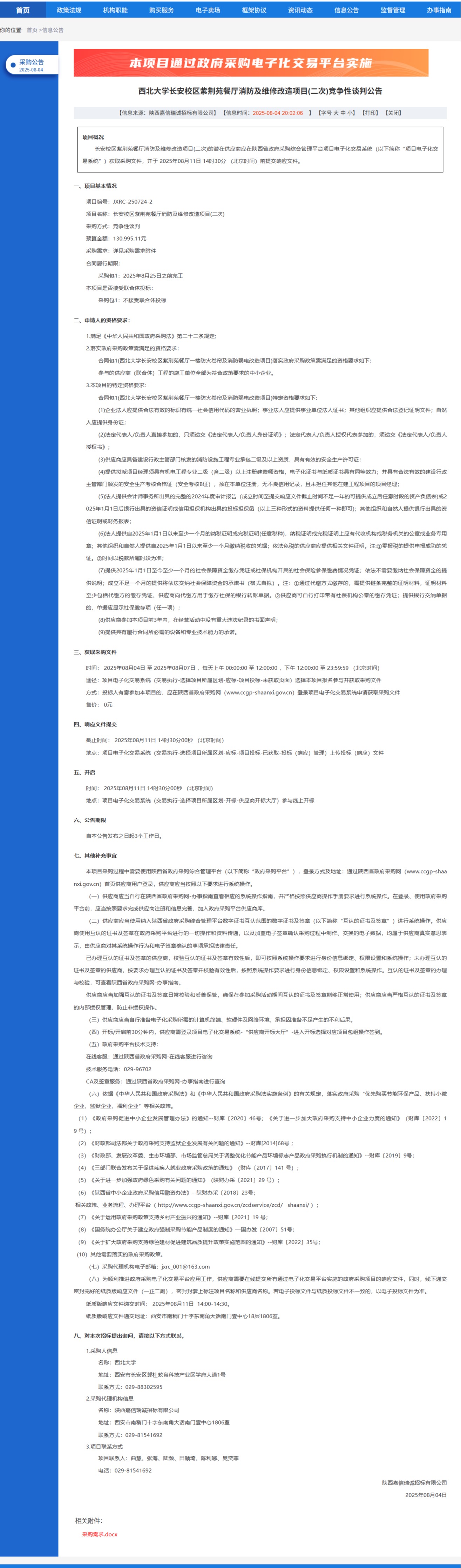 乐动网页版登录入口长安校区紫荆苑餐厅消防及维修改造项目(二次)竞争性谈判公告 作者: 编辑:党丹珩 时间:2025-08-04 公告地址:https://www.ccgp-shaanxi.gov.cn/freecms/site/shaanxi/ggxx/info/2025/8a69c1e29860ef6f019874c6b4a22713.html?noticeType=001013¬iceId=e37c65dc-712c-11f0-8063-08c0eb20c666