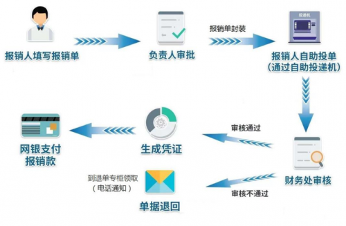 一般性的借款、报销业务需通过网上报销系统和申报系统预约办理,将单据封装后放入自动投单机中。财务处每天将定时收取单据并及时处理。其中:工程类、设备类或服务类报销业务,需在信封或者文件袋上注明“报销预审”字样。