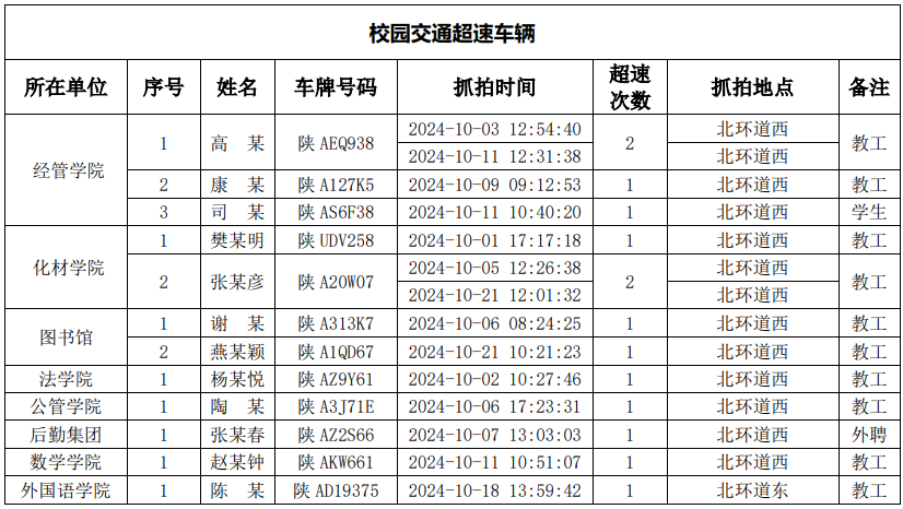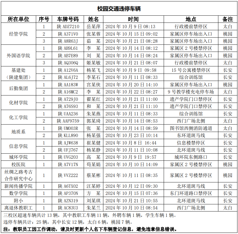 为进一步加强校园交通管理,保障校园交通安全有序,维护学校正常的教学、科研和生活秩序以及师生员工的人身财产安全,根据《乐动网页版登录入口校园交通安全管理规定》有关要求, 现将2024年10月校园交通违章车辆予以曝光,具体情况如下表。