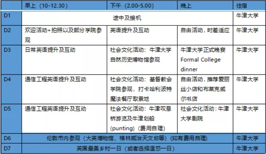 4.课程:学院内英语课程(牛津学院教室师资),专业讲座以及相关企业参观。