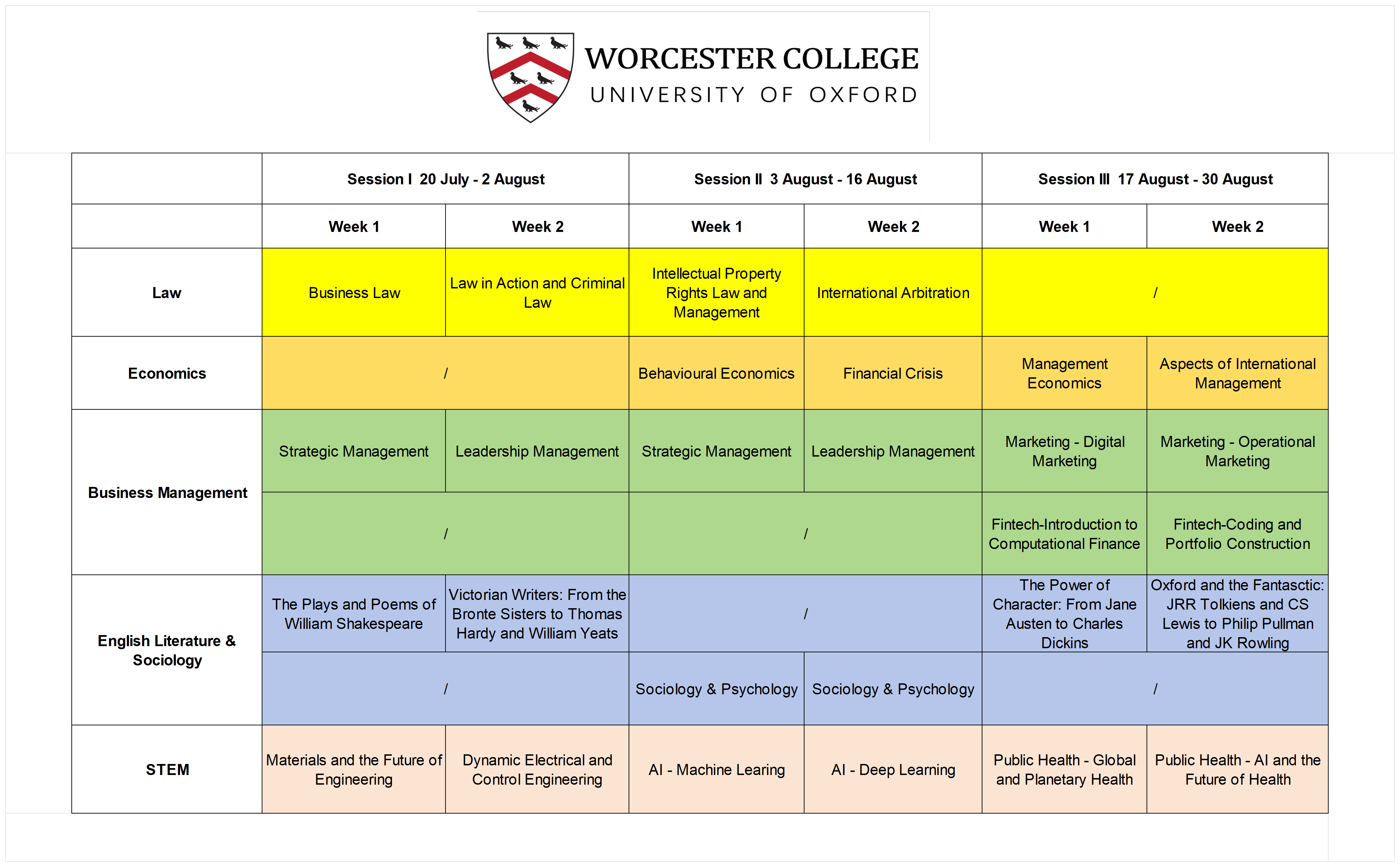 为提升学生全球竞争力,我校将在“学生海外访学计划”的框架下开展系列国际交流项目,引导学生积极参与境外高水平大学线上线下课程学习与科学研究,2025年牛津大学伍斯特学院暑期项目相关信息如下: