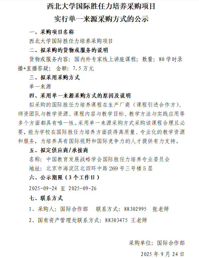 乐动网页版登录入口国际胜任力培养采购项目实行单一来源采购方式的公示