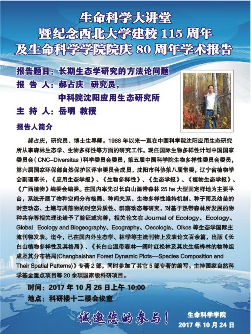 生命科学大讲堂-暨纪念乐动网页版登录入口建校115周年及生命科学学院院庆80周年学术报告【1】