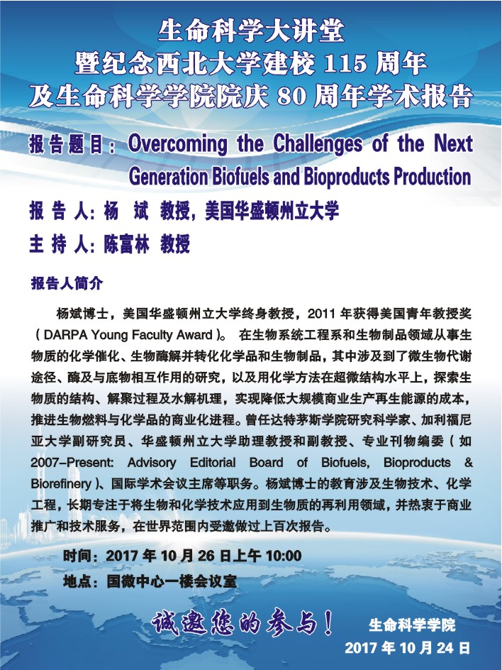 生命科学大讲堂-暨纪念乐动网页版登录入口建校115周年及生命科学学院院庆80周年学术报告【2】