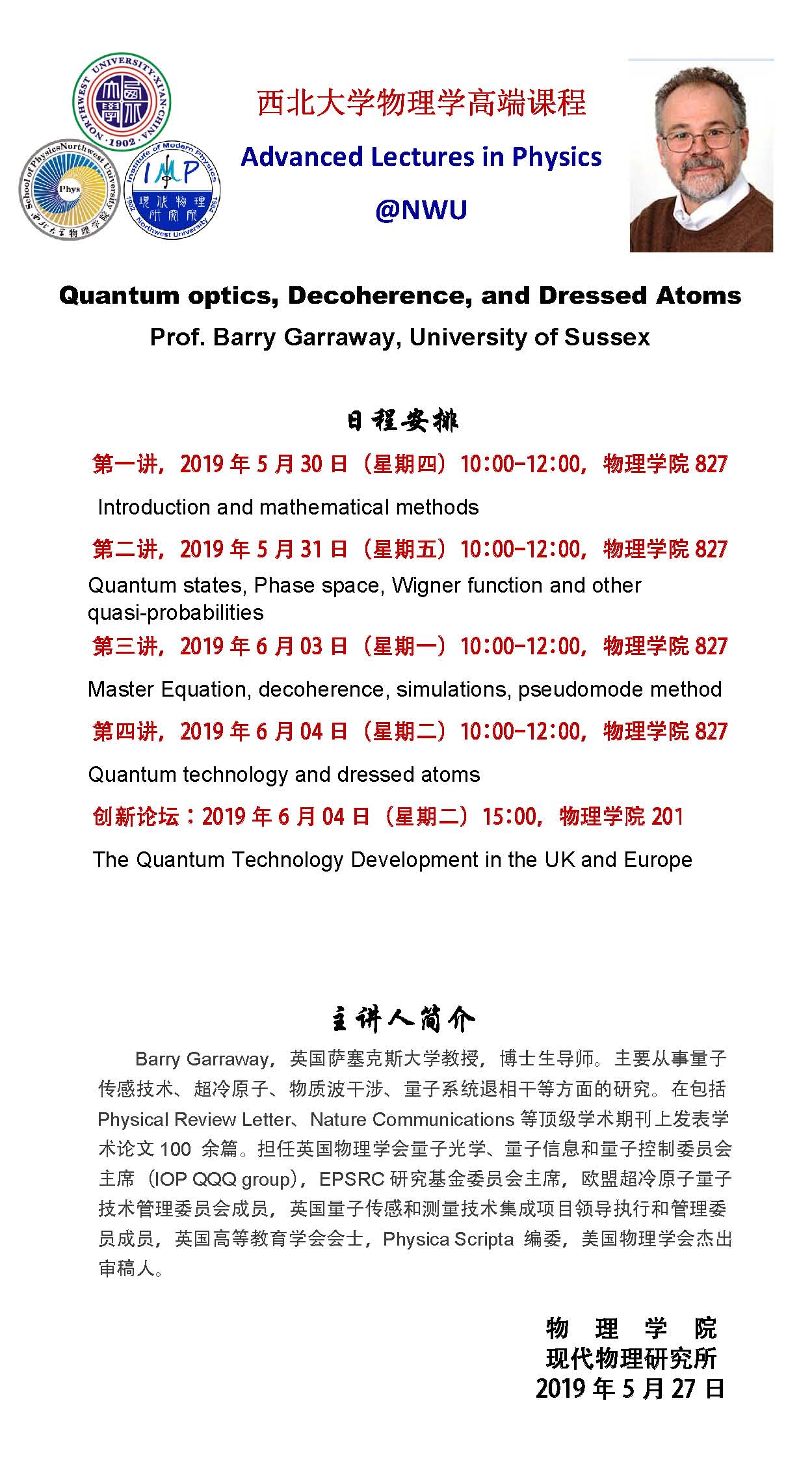 乐动网页版登录入口物理学高端课程--Quantum optics, Decoherence, and Dressed Atoms