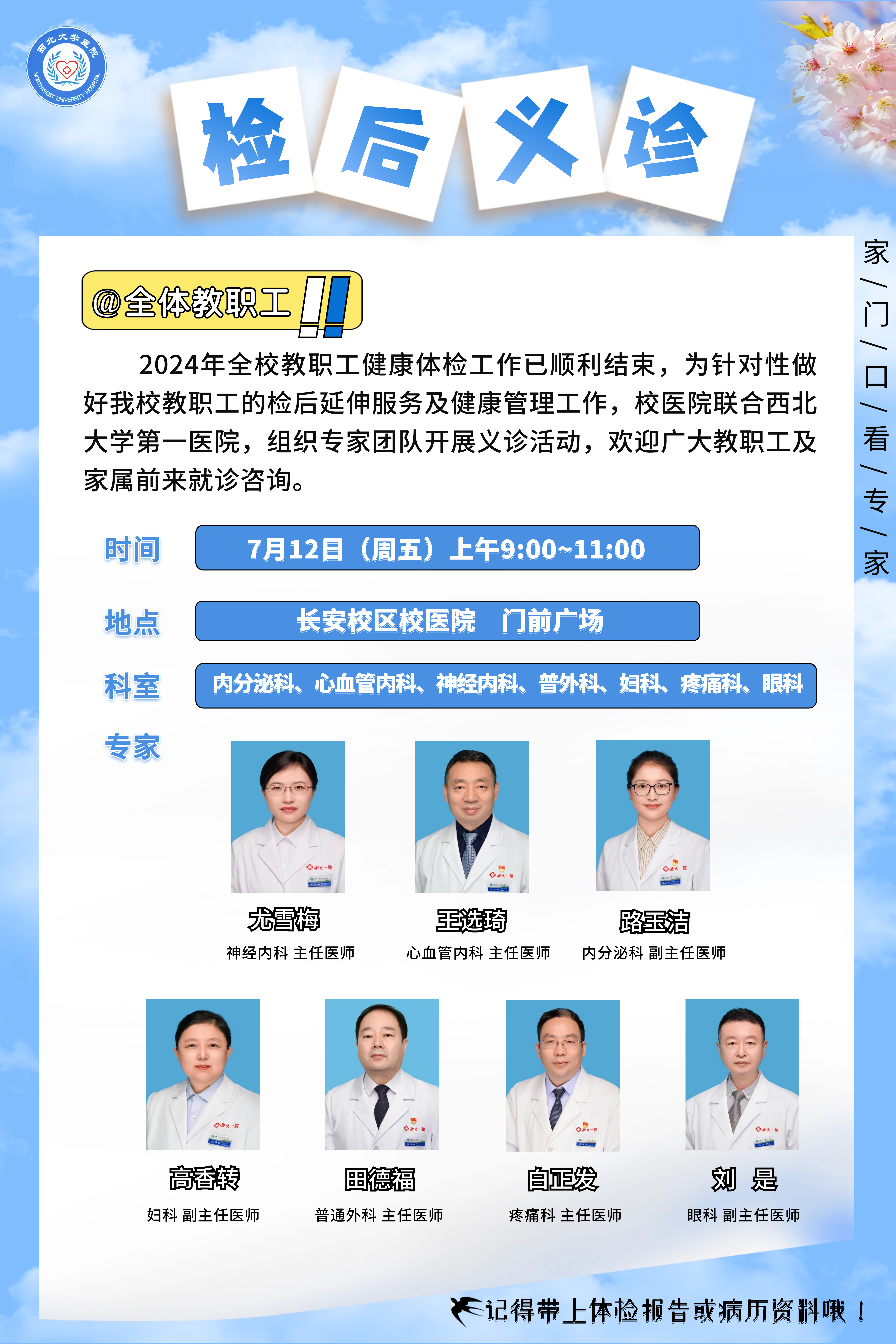 教职工体检检后义诊通知