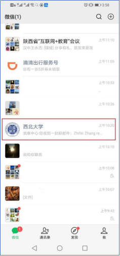 由于腾讯微信于近期进行了升级,导致我校微信企业号用户直接从好友对话框里进入微信企业号(如图1所示),出现空白或者仅出现“消息中心”和“移动校园小助手”菜单(如图2所示),影响到“晨午检”、“乘车扫码”等应用服务的使用。对此,解决方法如下: