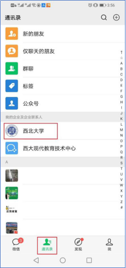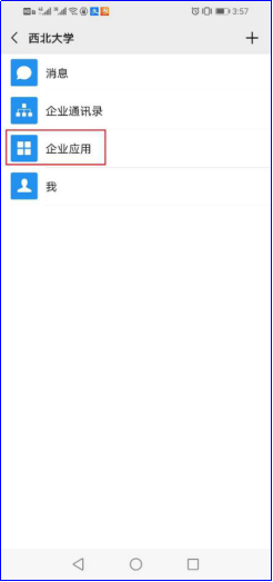 进入微信后,点击屏幕下方的“通信录”,在通信录中点击“乐动网页版登录入口”(如图3所示),通过通信录进入乐动网页版登录入口企业号后,点击“企业应用”菜单项(如图4所示),即可显示我校企业号里集成的所有应用服务。