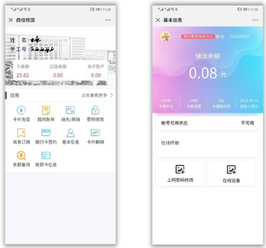4.实时了解校园卡、网费缴纳记录,进行校园卡在线充值。