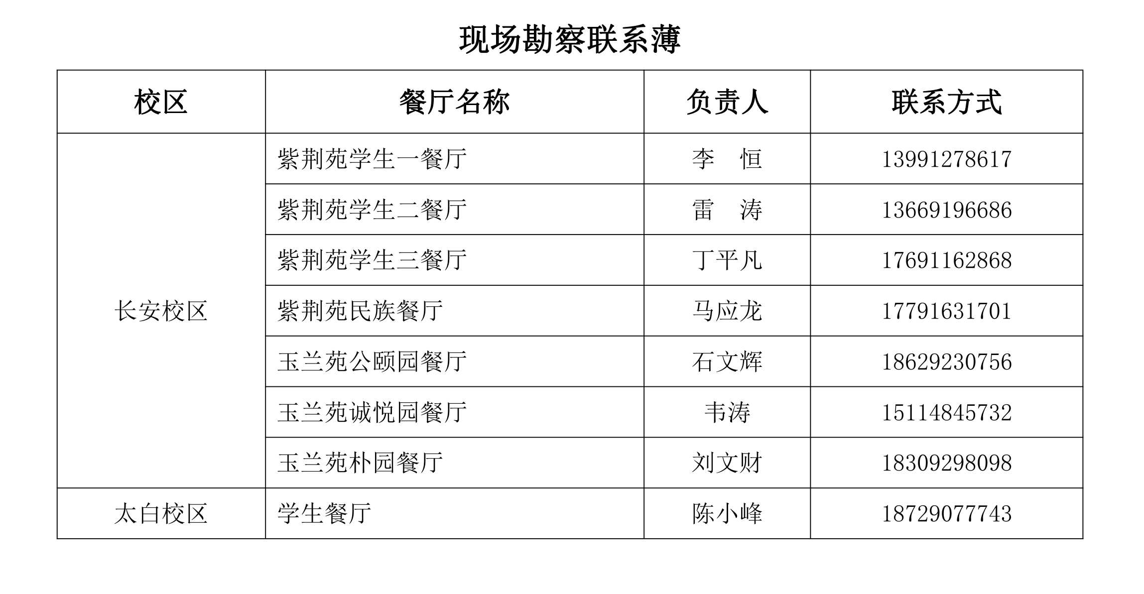 报名者请在报名前联系餐厅负责人进行现场勘察,联系方式如下: