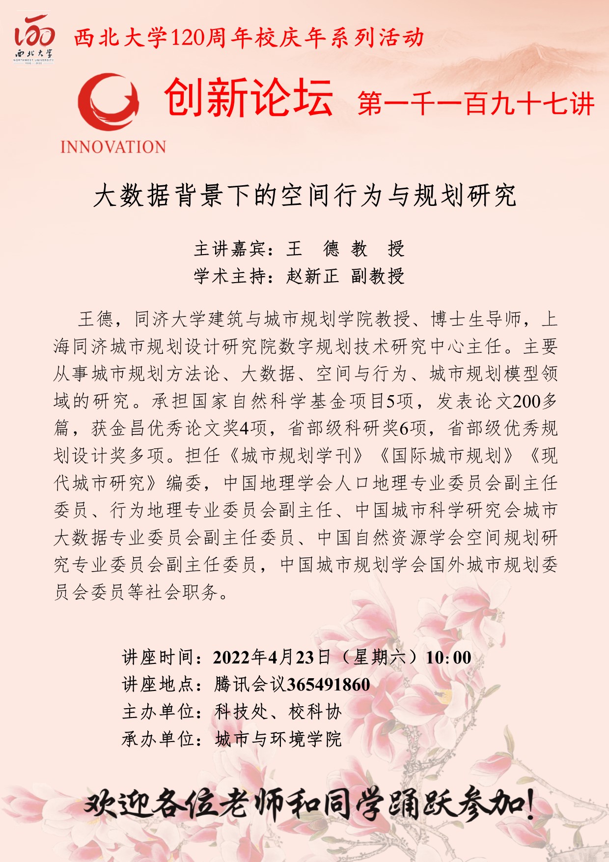 乐动网页版登录入口创新论坛第一千一百九十七讲暨120周年校庆年系列活动:大数据背景下的空间行为与规划研究