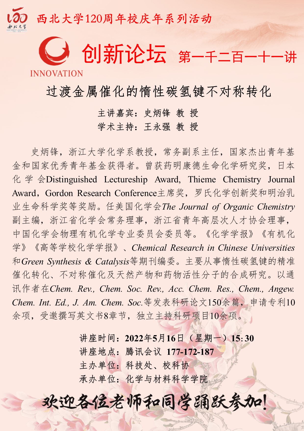 乐动网页版登录入口创新论坛第一千二百一十二讲暨120周年校庆年系列活动:病毒感染关键蛋白糖基化与药物研发---以SARS-CoV-2为例