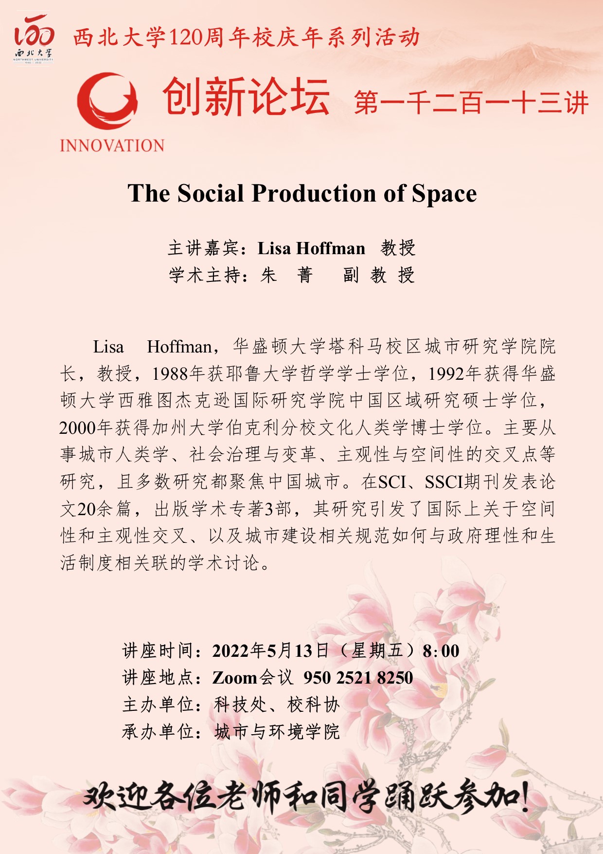 乐动网页版登录入口创新论坛第一千二百一十三讲暨120周年校庆年系列活动:The Social Production of Space 作者:Lisa Hoffman 教授 编辑: 时间:2022-05-12