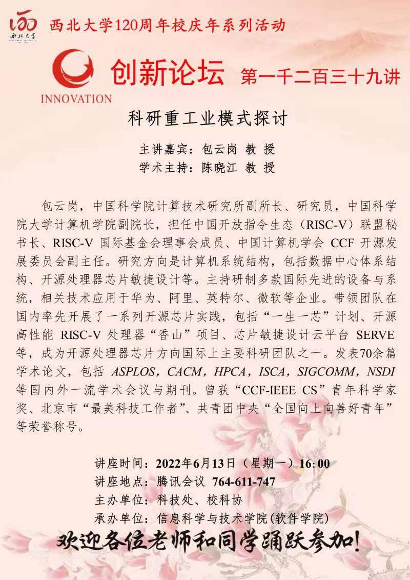 乐动网页版登录入口创新论坛第一千二百三十九讲暨120周年校庆年系列活动:科研重工业模式探讨