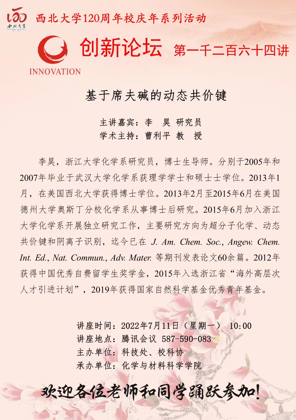 乐动网页版登录入口创新论坛第一千二百六十五讲暨120周年校庆年系列活动:可控超分子聚合与功能化