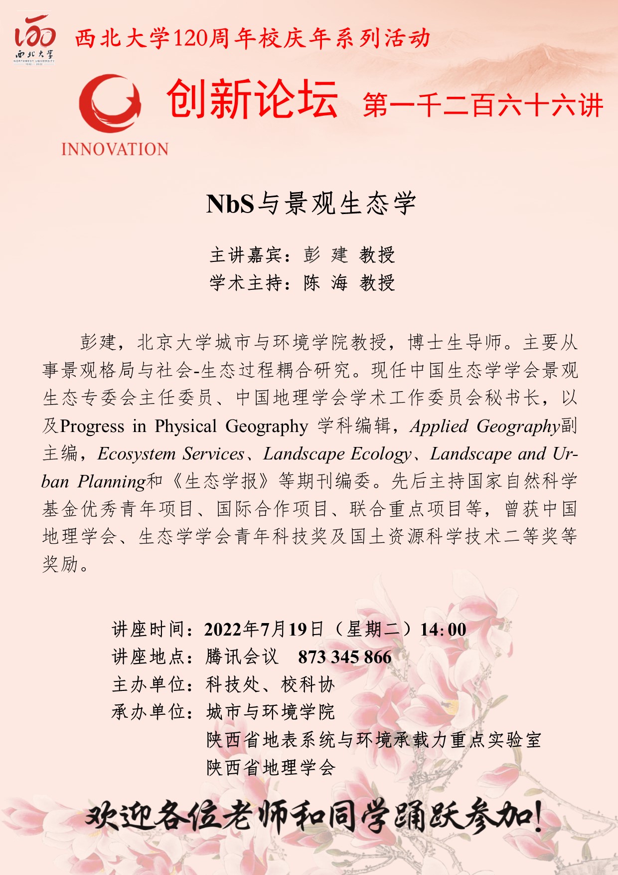 乐动网页版登录入口创新论坛第一千二百六十六讲暨120周年校庆年系列活动:NbS与景观生态学