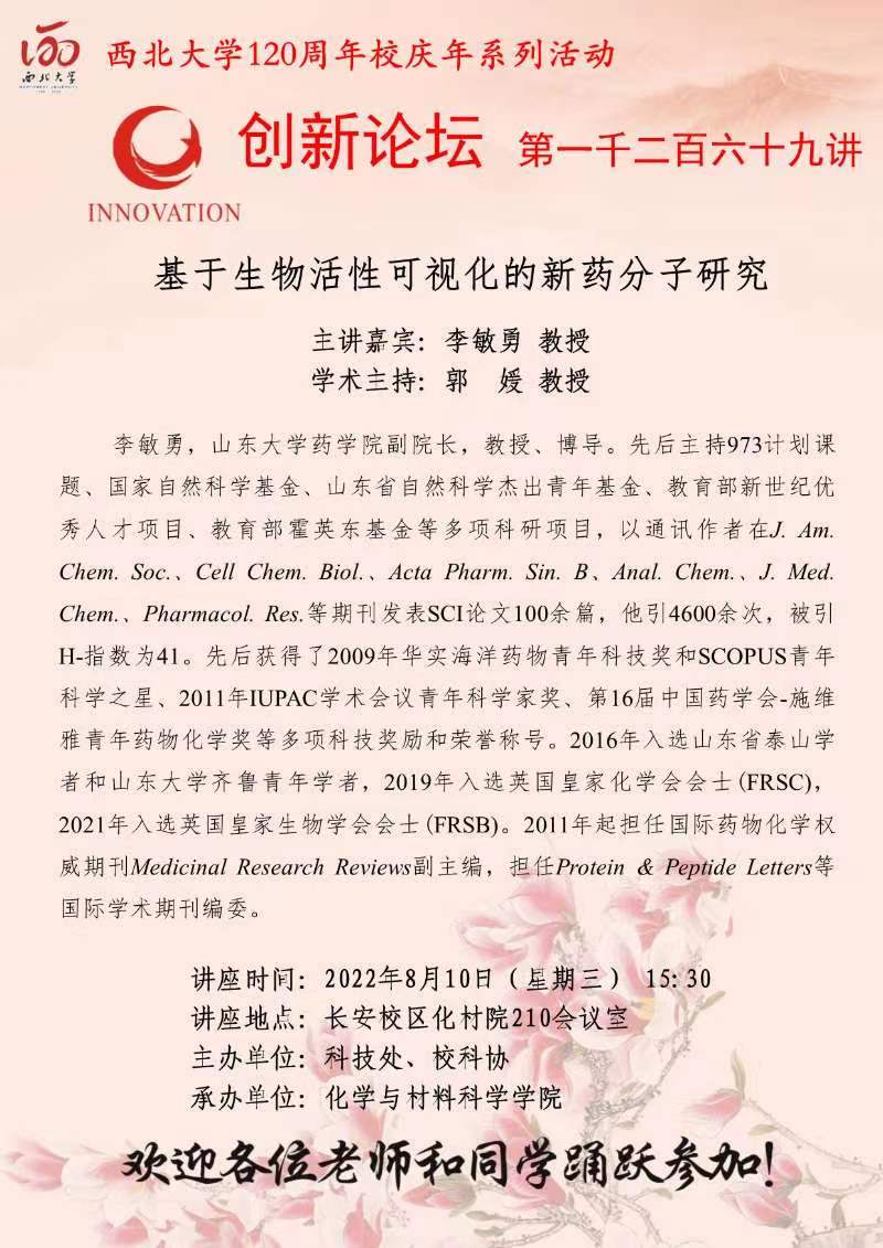 乐动网页版登录入口创新论坛第一千二百七十讲暨120周年校庆年系列活动:荧光探针化学生物学